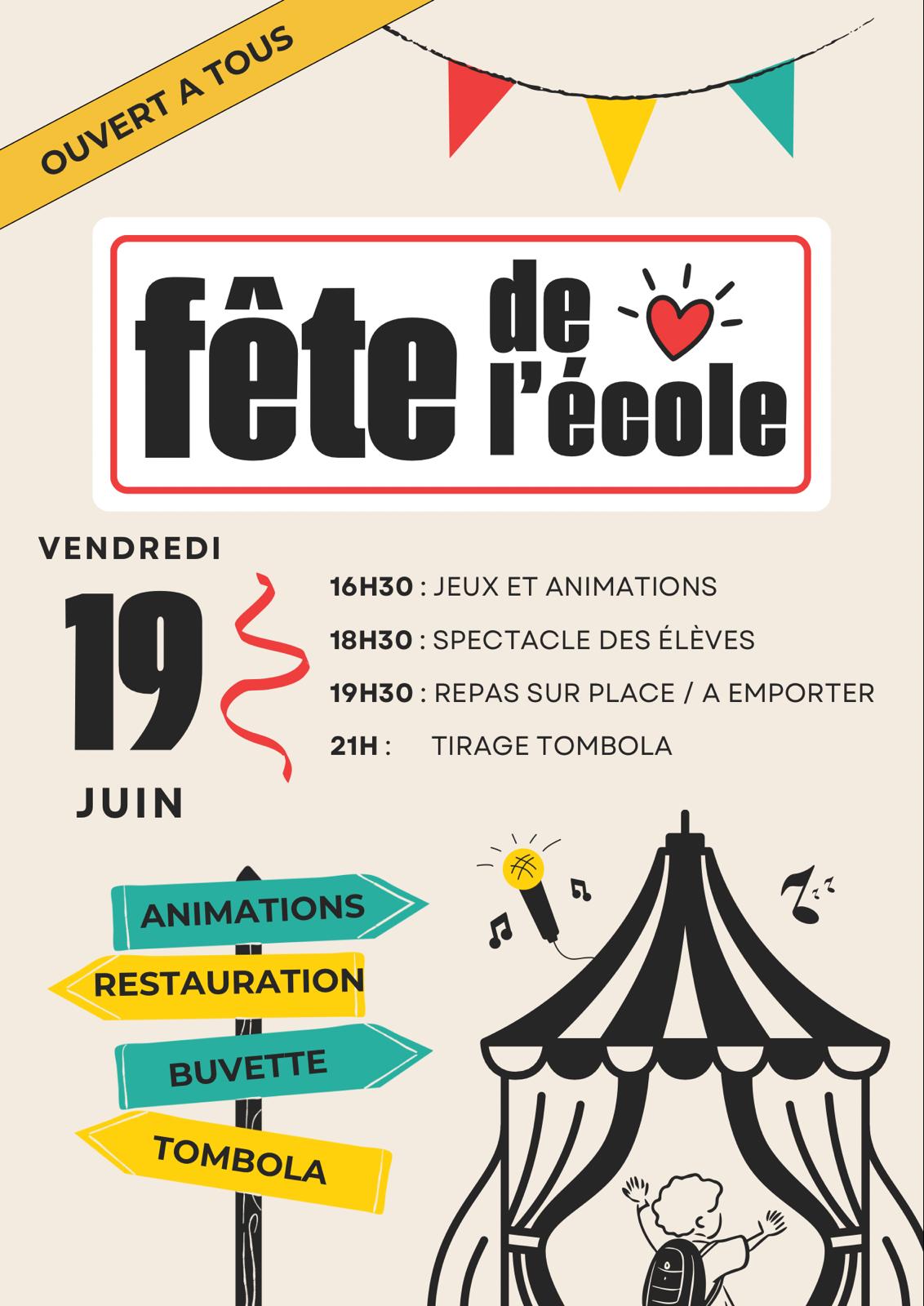 Comme chaque année, l’APE organise la fête de l’école mais attention, cette année, elle se déroulera le vendredi 19 Juin 2026 à partir de 16H30.